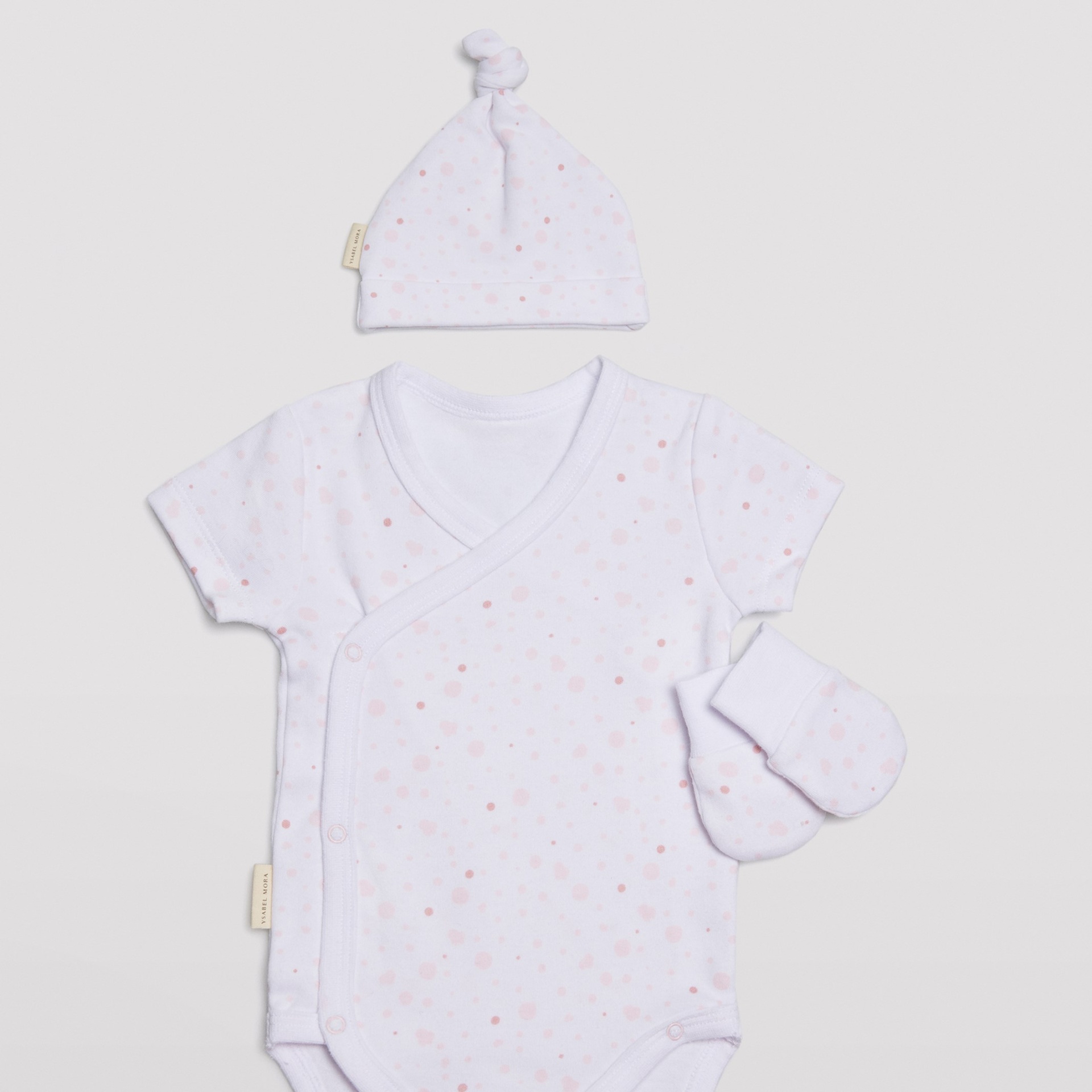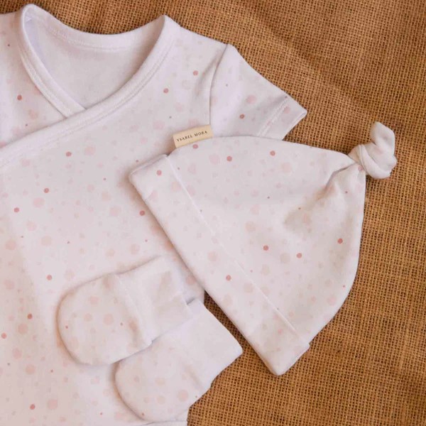 Home Ver tudo Conjunto "Primeira Roupa" Bolinhas Rosa Conjunto "Primeira Roupa" Bolinhas Rosa 15,95 € Desconto de %. Comprar Contactar Adicionar à wishlist Conjunto de 3 peças para bebé recém-nascido composto por body de manga curta, gorro e luvas. Estampado com bolinhas em tons rosa suave O conjunto é feito de algodão natural, um material macio e respirável que é suave para a pele do bebé. Body de manga curta trassado que aperta com molas de pressão. Cuidados com a peça:• Lavável a 30º• Passar a ferro do avesso/não usar lixívia• Não secar na máquina• Não limpar a seco Composição 100% Algodão Partilhar