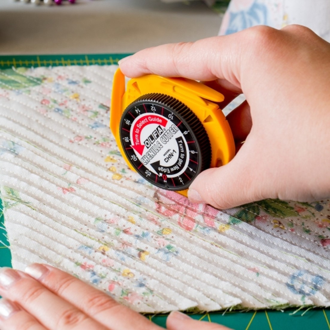 Home Tesouras, Cortadores Rotativos e Lâminas OLFA | Cortador de Chenille OLFA | Cortador de Chenille SKU: uni_CHN-1 22,90 € Desconto de %. Comprar Contactar Adicionar à wishlist Cortador de Chenille da marca Olfa com lâmina. Inclui uma lâmina de alta qualidade duplamente afiada e com durabilidade superior. Para maior segurança a lâmina não roda e está alojada num selector de proteção sem bordas expostas. Corta até oito camadas de tecido. Os quatro "pés" do cortador servem de guias para criar chenille em várias larguras: S – 6mm | 1/8"M – 8mm | 1/4"L – 10mm | 3/8"LL – 12mm | 1/2" As lâminas podem ser substituídas.Utilizável por destros e canhotos. Atenção: A lâmina deverá ser manuseada com muito cuidado, uma vez que vem extremamente afiada. Manter fora do alcance das crianças. Partilhar