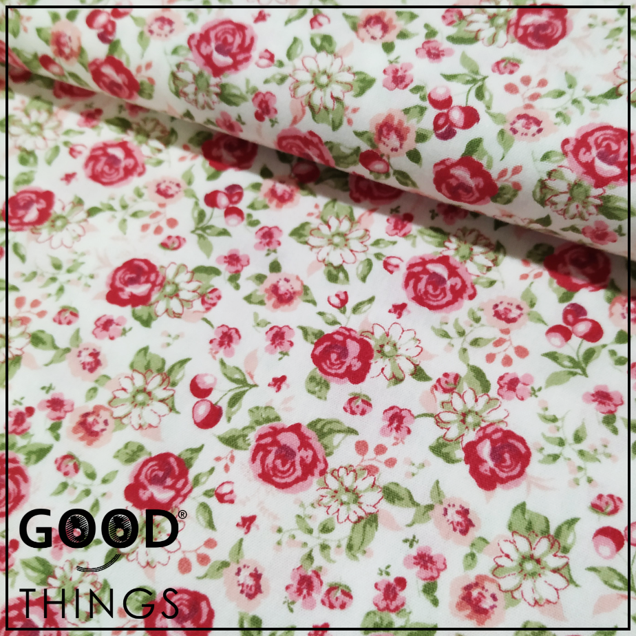 Tecido Algodão Orgânico | Rosinhas Vermelhas