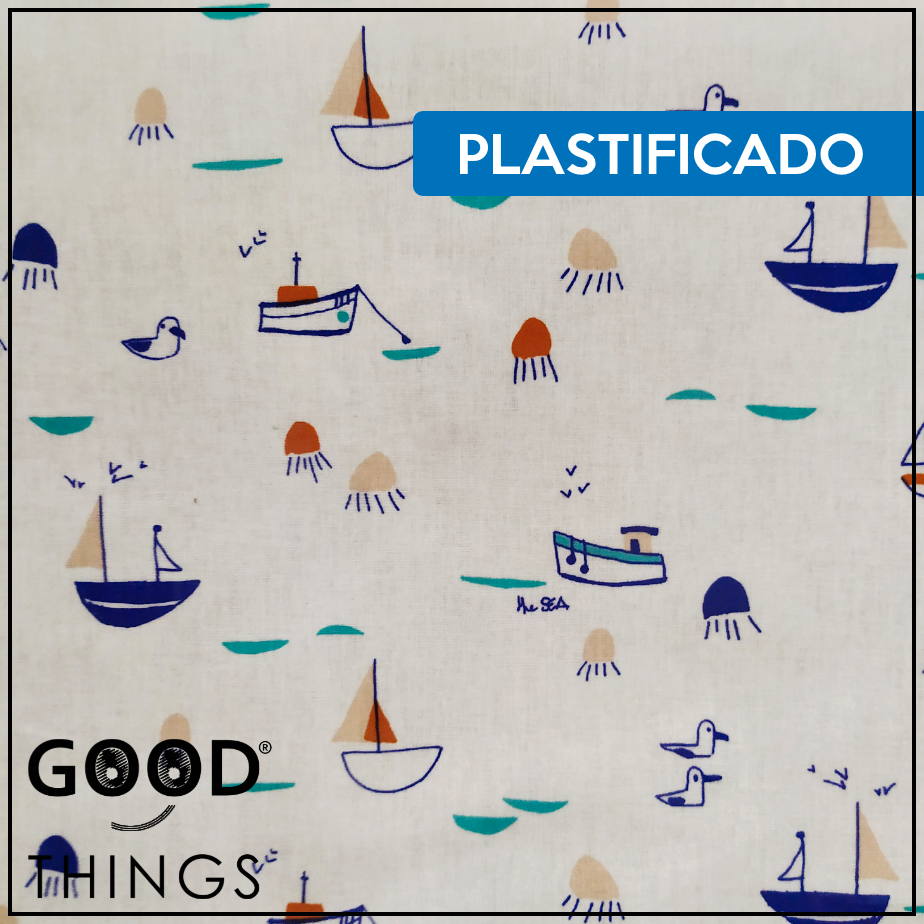 Tecido Plastificado | Barcos fundo Branco