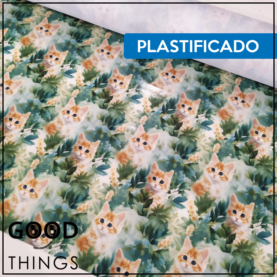 Tecido Plastificado | Gatos fundo Folhas Verdes